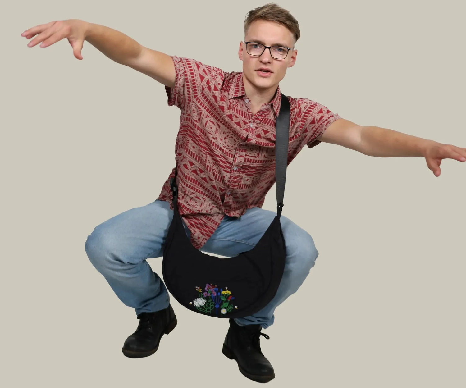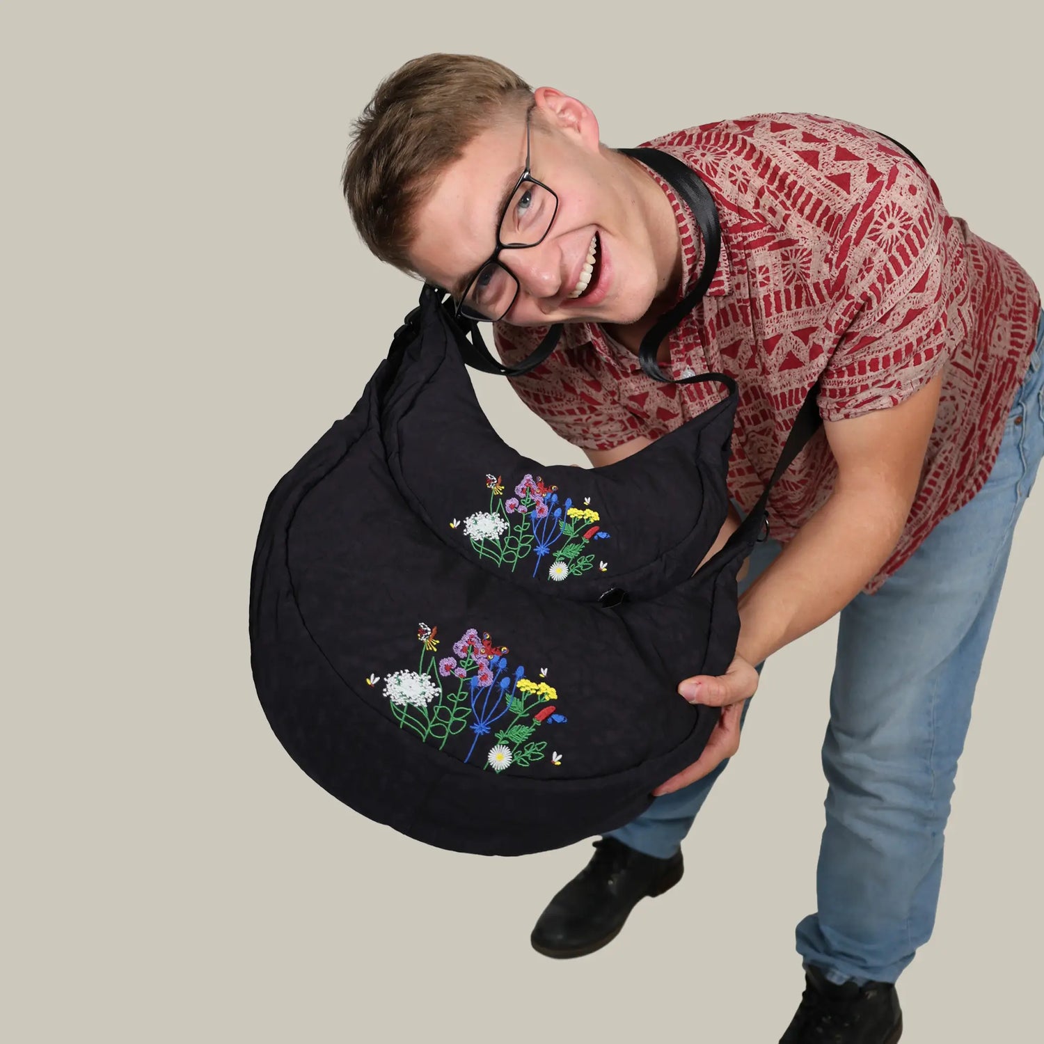 Moonbaq Mini (3L) & Moonbaq (9L) – unsere beliebten Halbmondtaschen in zwei Größen, verziert mit den Pflanzen, die Robinga liebt