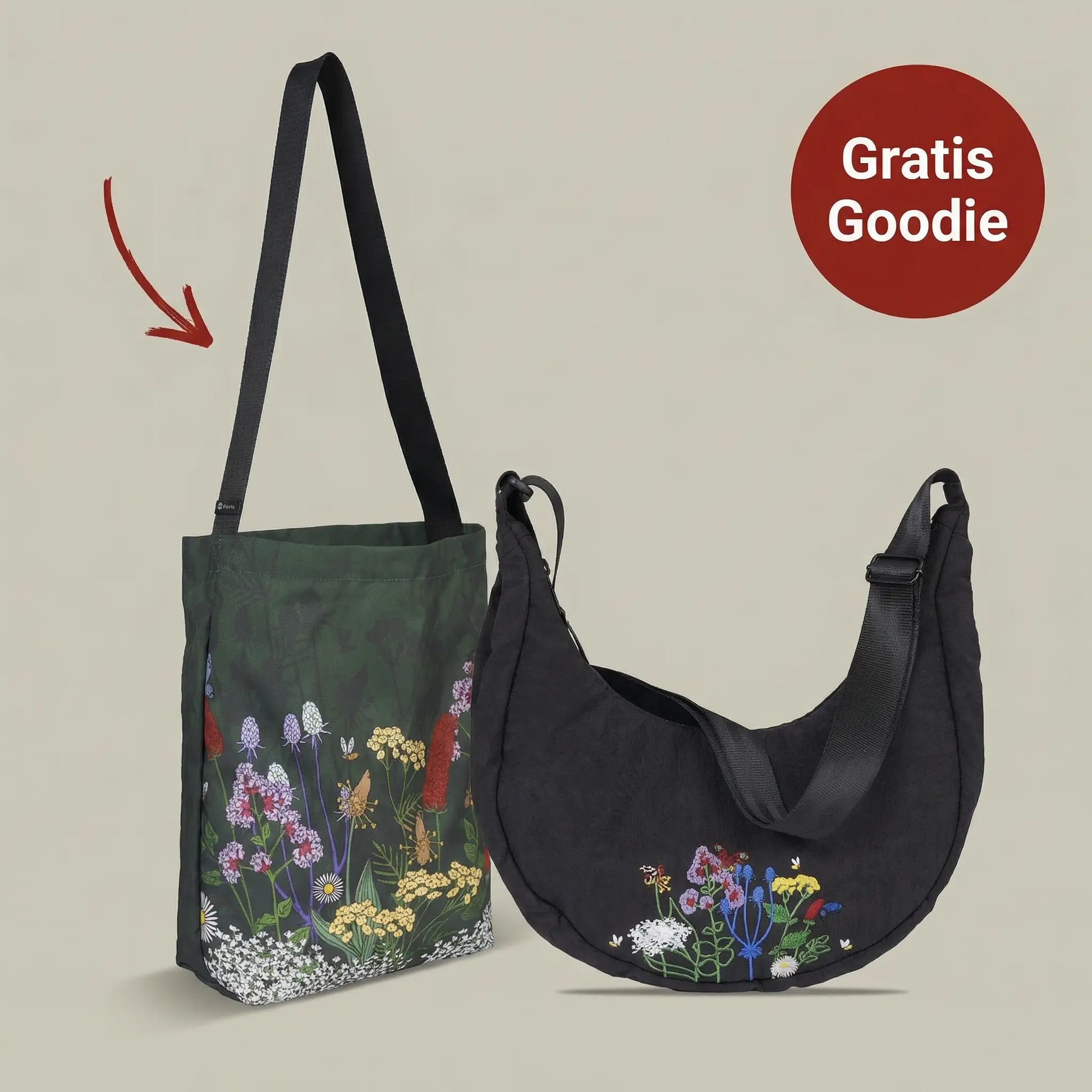 3L crescent-shaped bag made from upcycled airbags • Designed in the Robinga special edition "Plants I love"