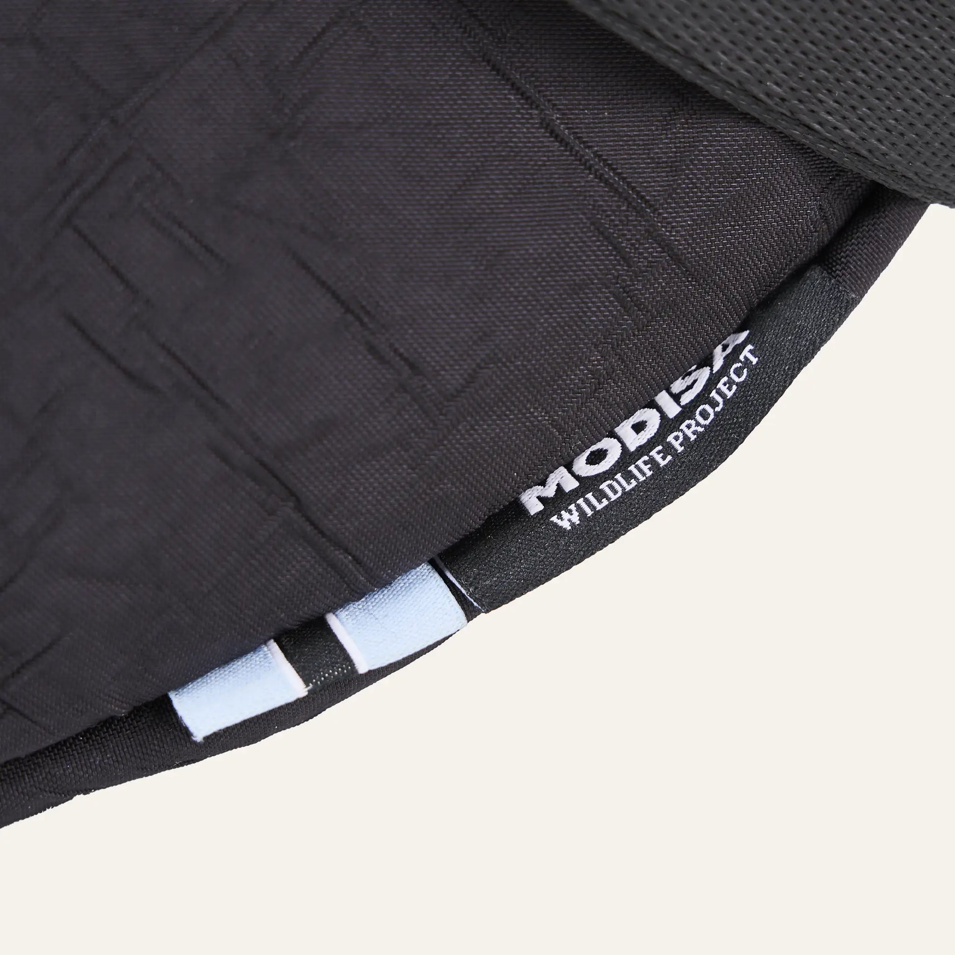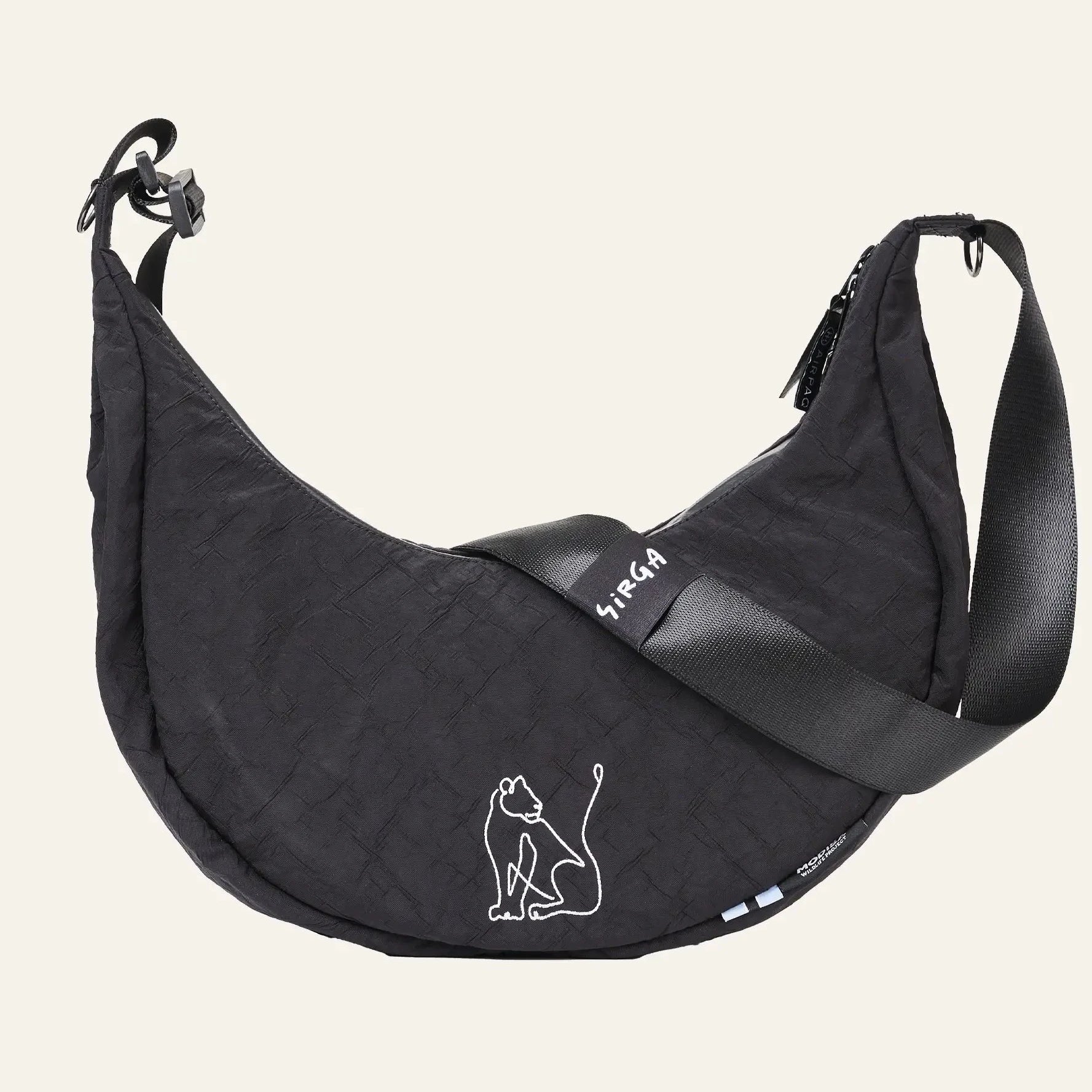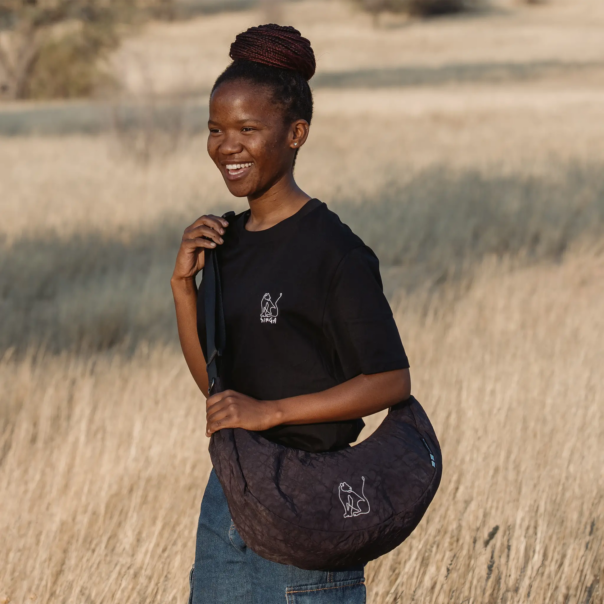 Halfmoonbag made out of Airbags · This Edition supports endangered wildlife in the Kalahari Desert.