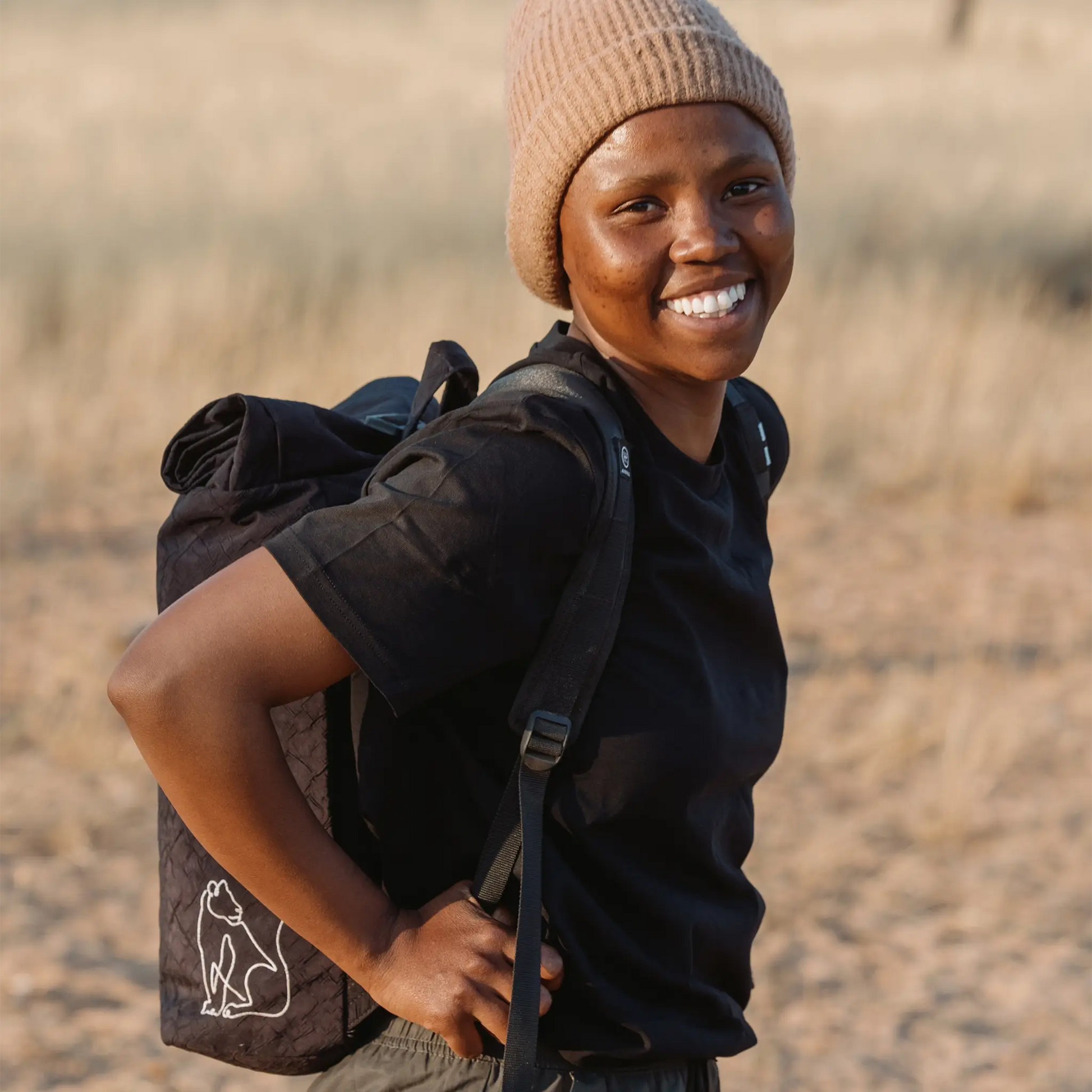 Rolltop made out of Airbags · This Edition supports endangered wildlife in the Kalahari Desert.
