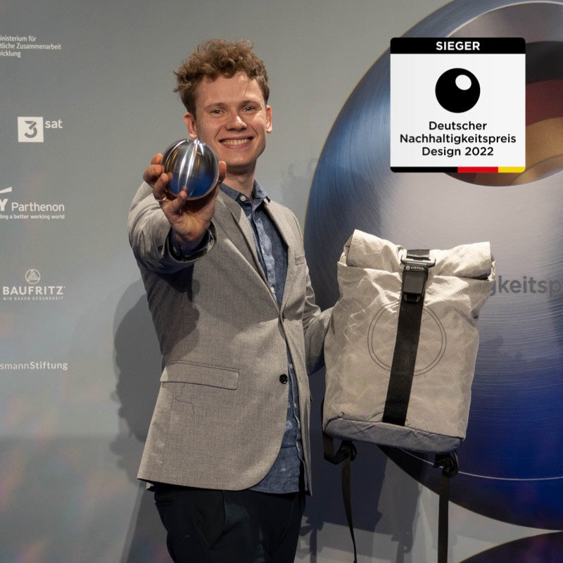Airpaq wurde 2022 mit dem Deutschen Nachhaltigkeitspreis Design ausgezeichnet – für die gelungene Verbindung aus Upcycling, urbanem Design und gesellschaftlicher Wirkung. Unsere Produkte zeigen, wie nachhaltiges Handeln auch visuell begeistert – und damit ein echtes Statement setzt.