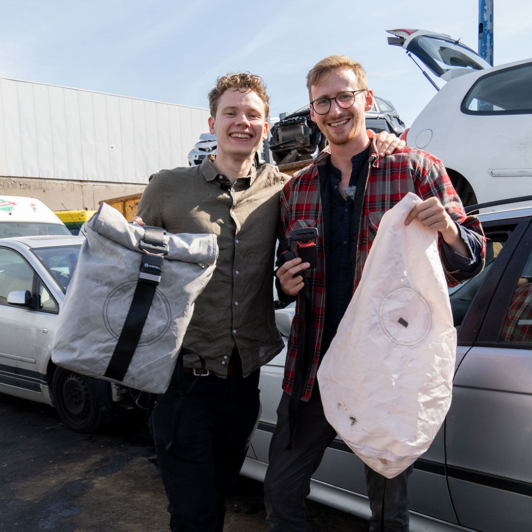 Hi, wir sind Adrian & Michael. Airpaq steht für nachhaltiges Design aus ausgedienten Autoteilen. Was als Idee zweier Studenten auf dem Schrottplatz begann, ist heute ein vielfach ausgezeichnetes Unternehmen mit Produktion in Europa – und einer klaren Vision: Ressourcenschonung mit Stil.