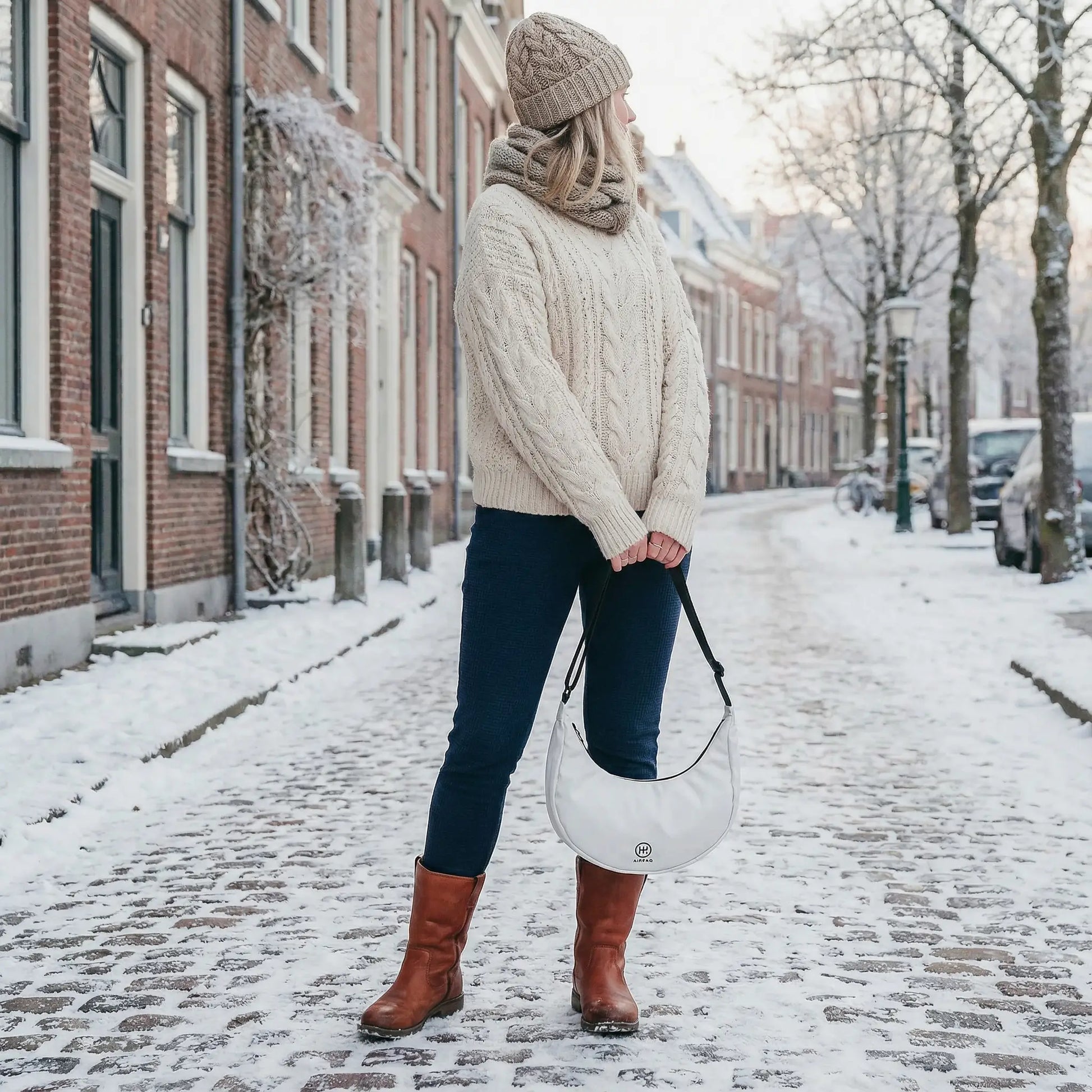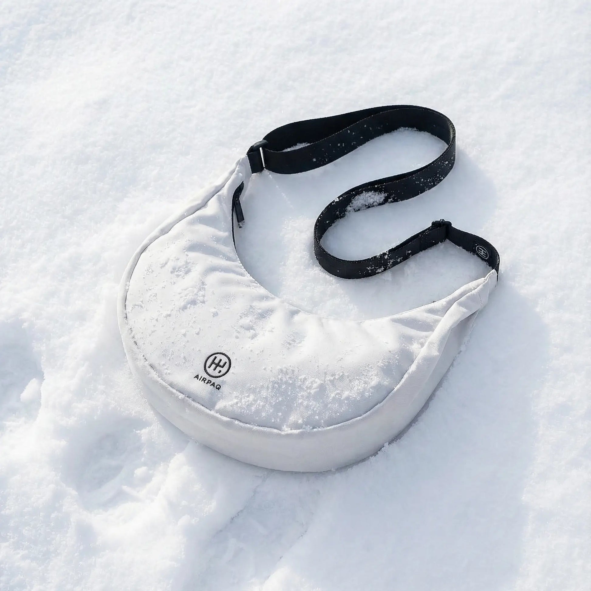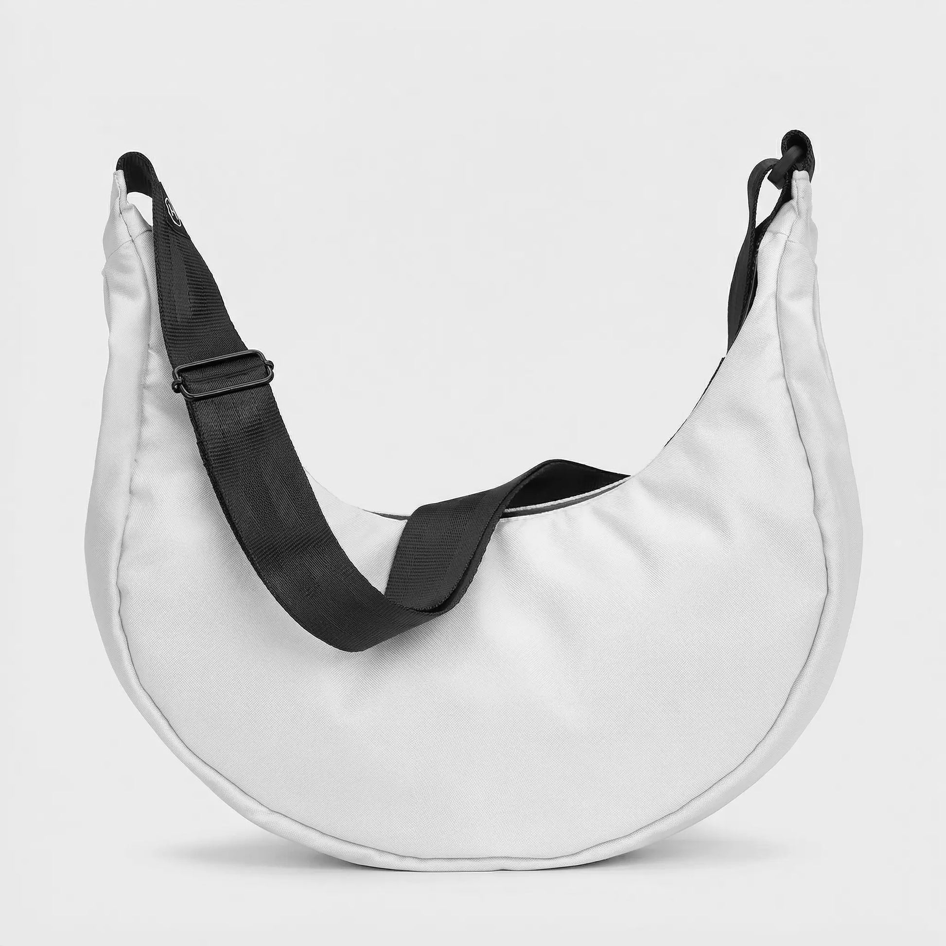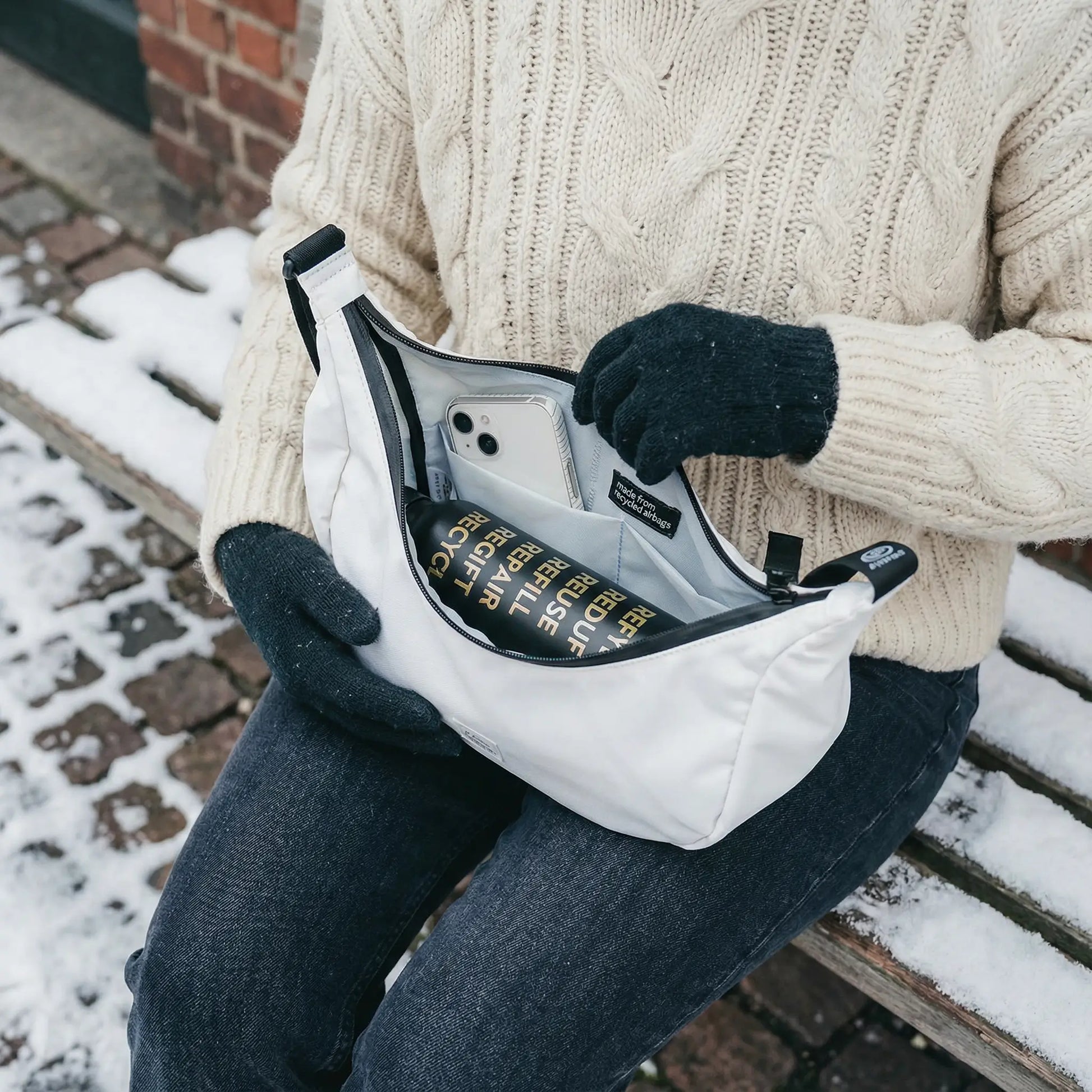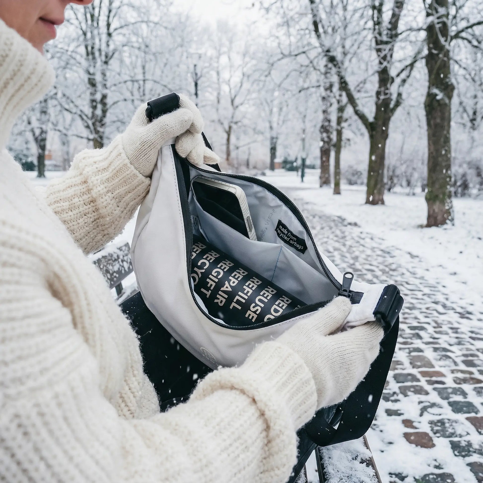 3L Halbmondtasche aus ungefärbten Airbags – So wenig dabei wie nötig und so praktisch wie möglich.