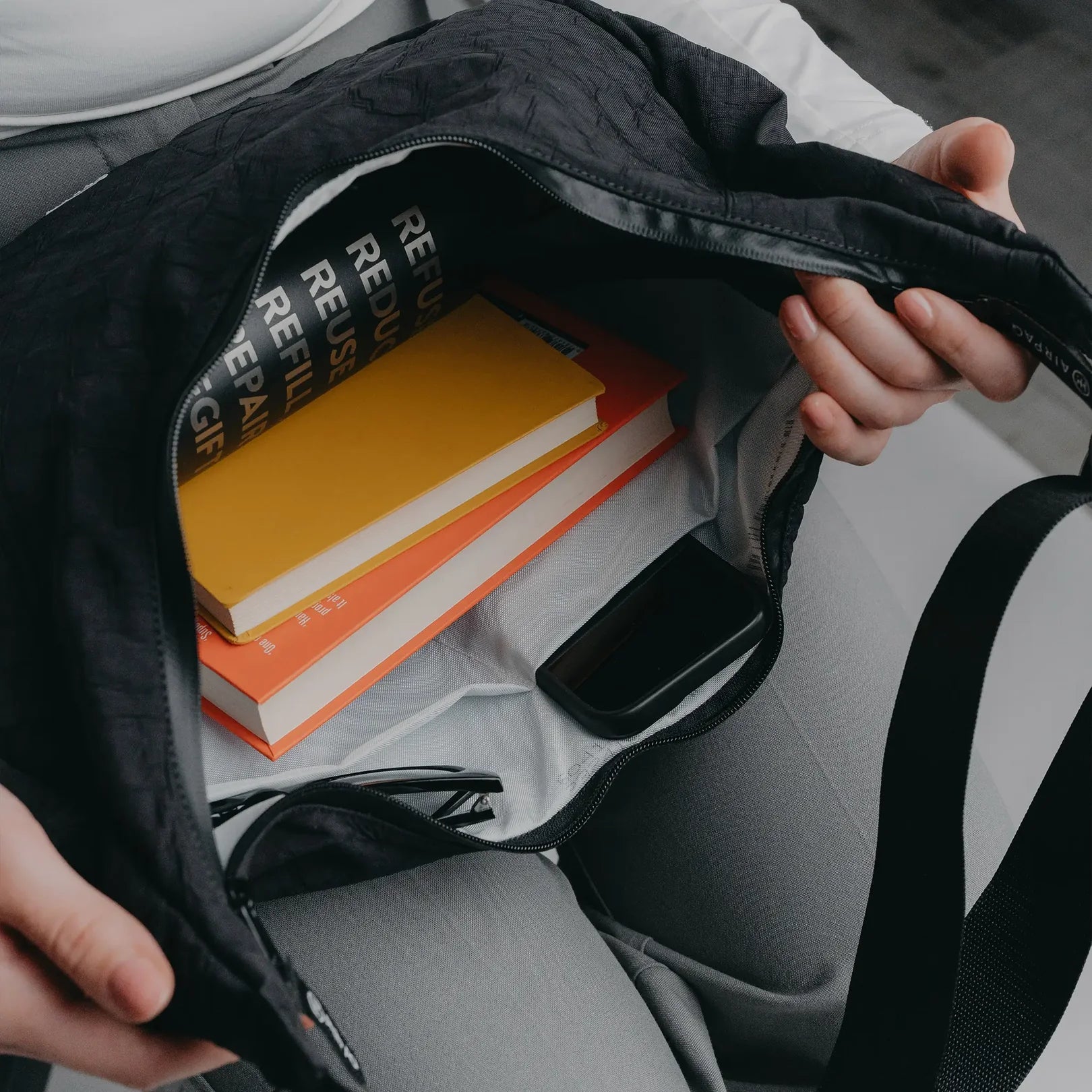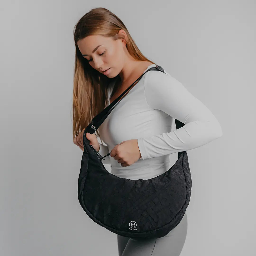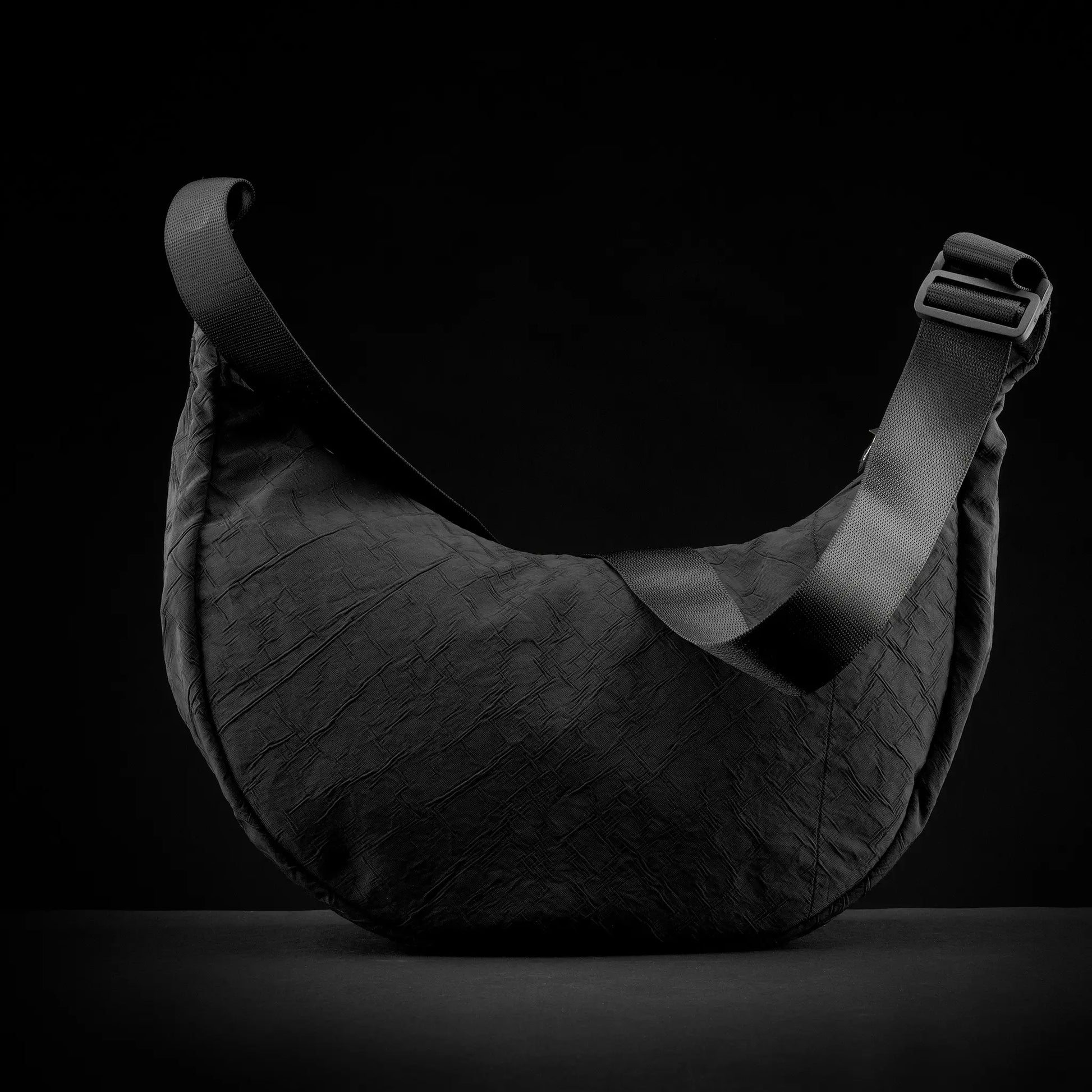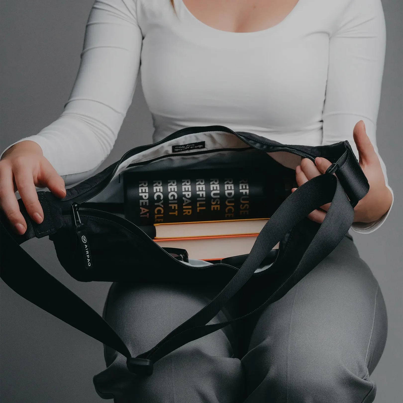 9L Halbmondtasche aus Airbags – genug Platz für alles, was dir unterwegs wichtig ist.