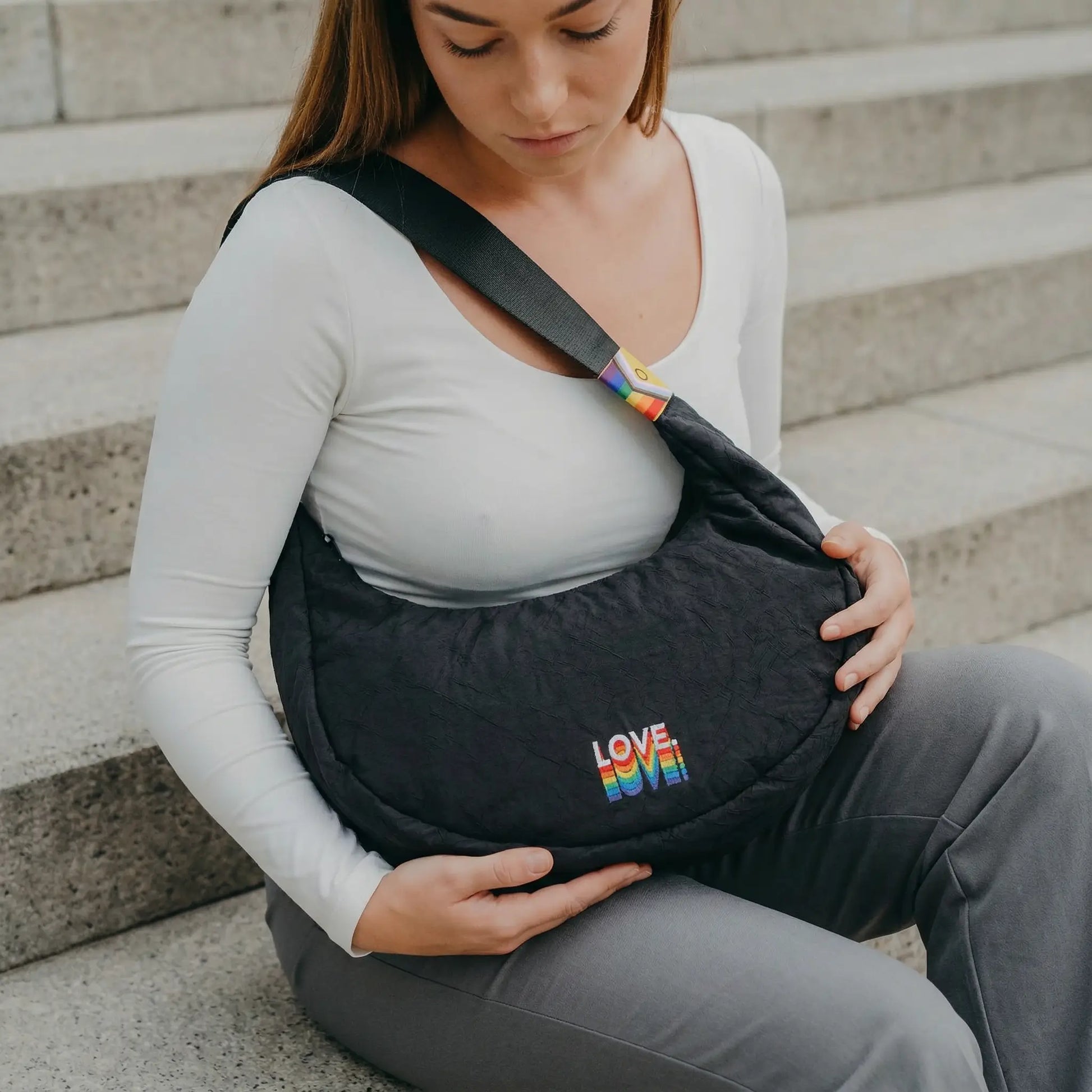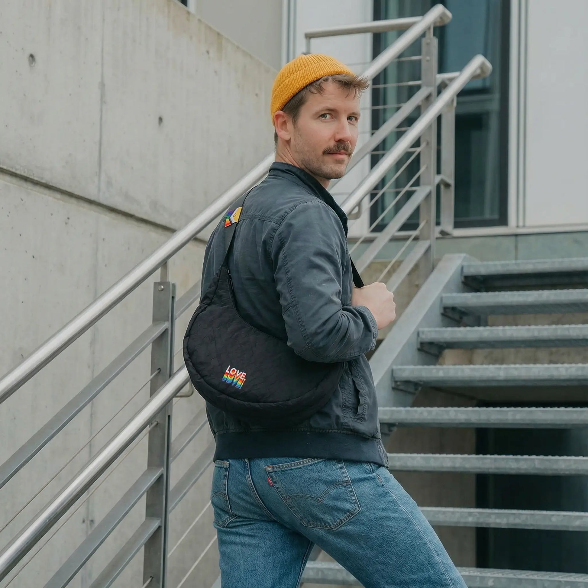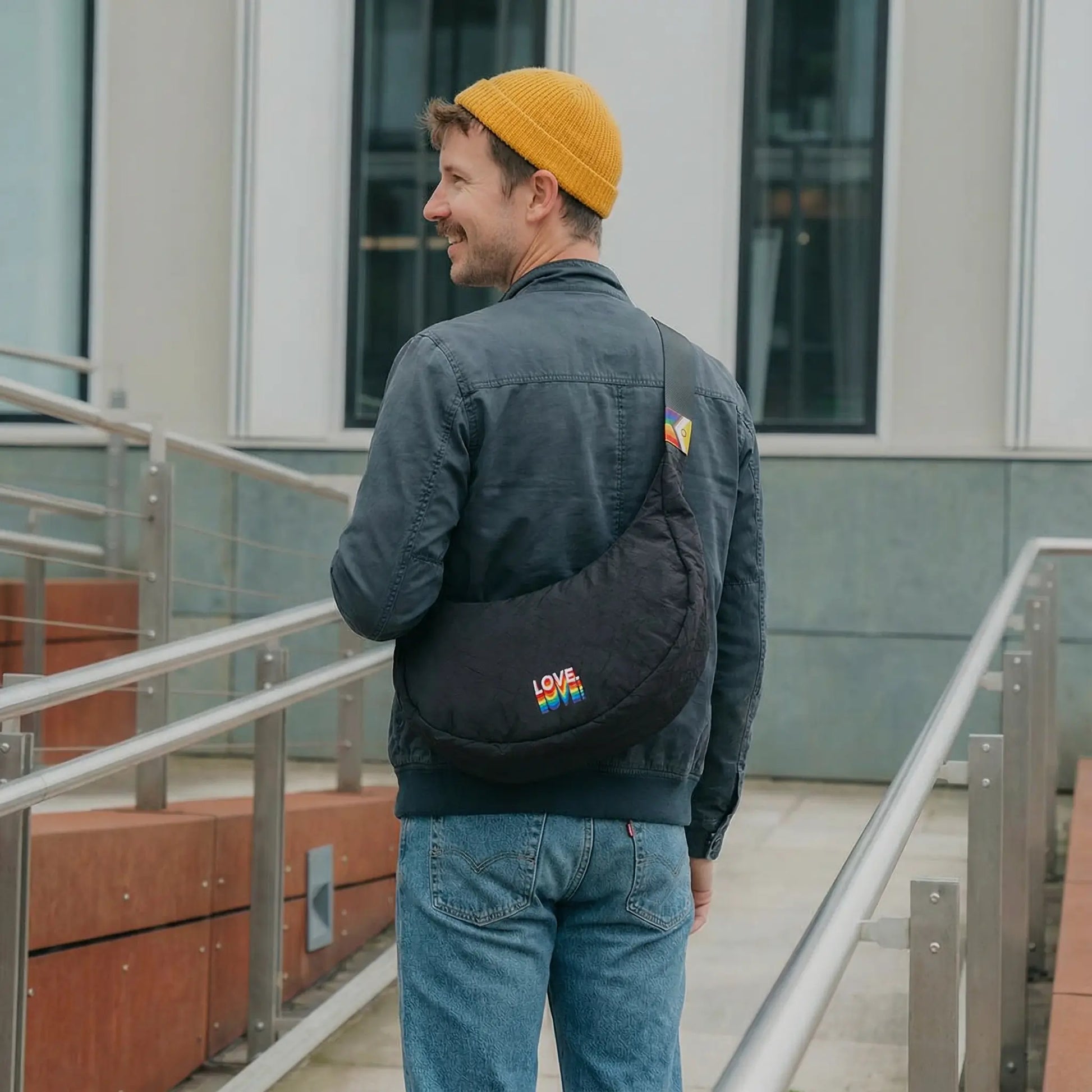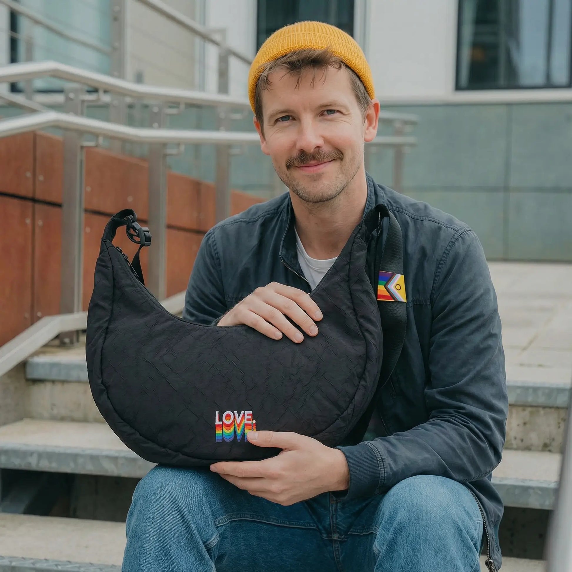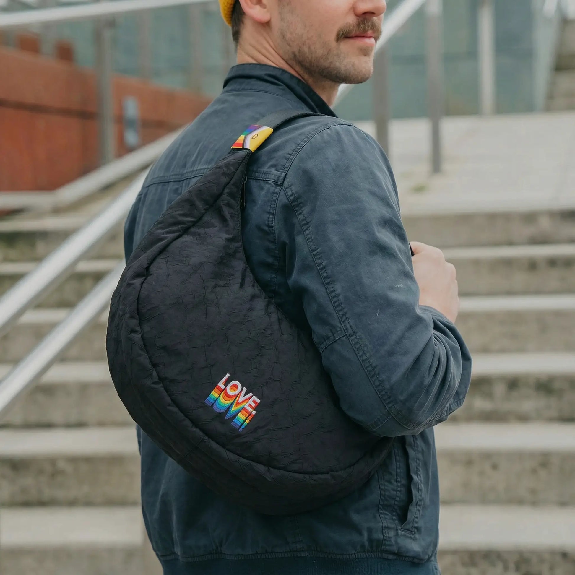 Die 9L Halbmondtasche aus Airbags · Im Design der limitierten Pride-Edition