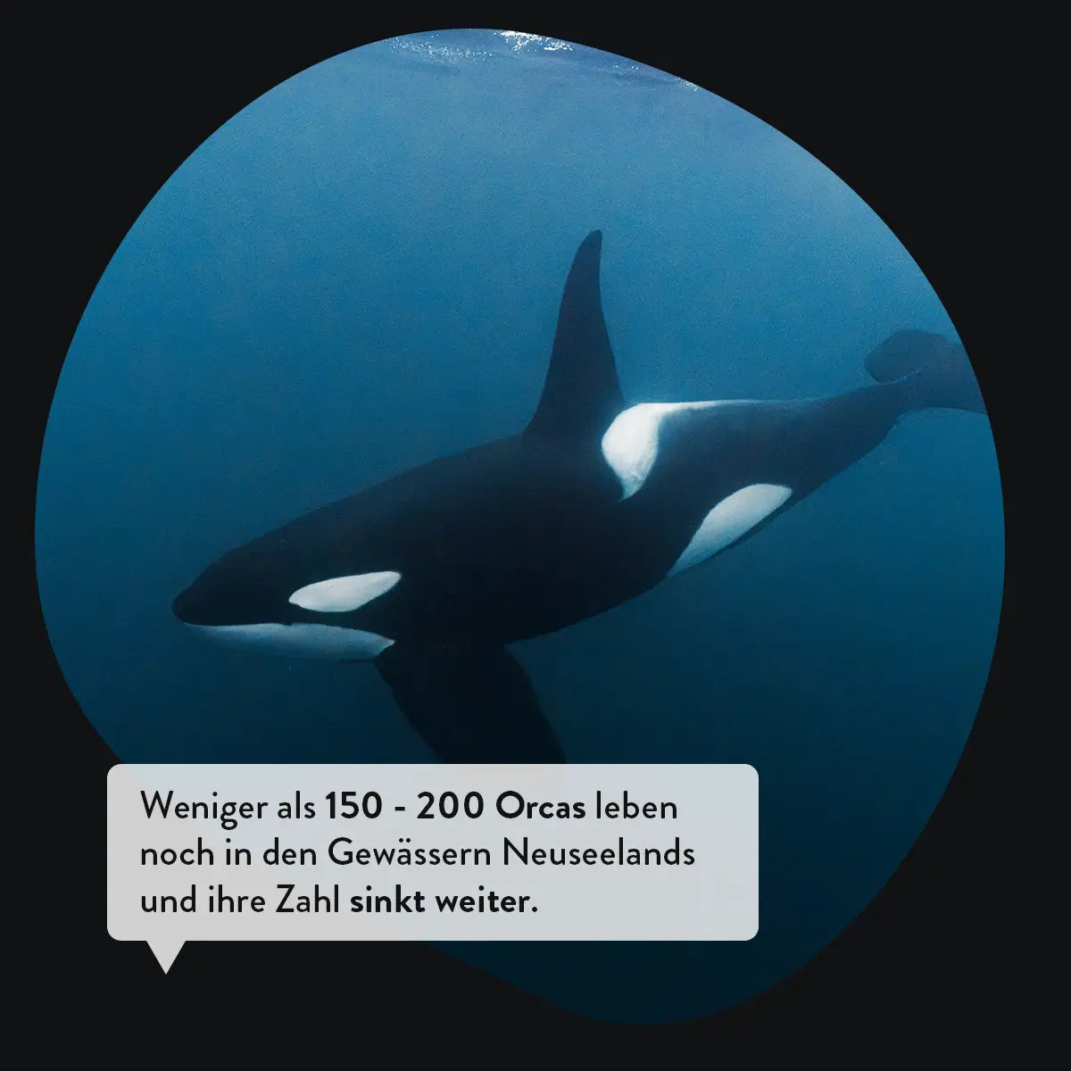 Die gesammelten Spenden fließen direkt in den Schutz und die Forschung der Orcas in Neuseeland. Unter der Leitung von Ingrid N. Visser, einer der weltweit führenden Expertinnen, werden die Tiere gerettet, geschützt und erforscht – Tag für Tag.Ein aktuelles Ziel: die Reparatur ihres wichtigen Schnellbootes, mit dem sie die Orcas in Notfällen erreichen kann. Die Kosten dafür belaufen sich auf 35.000 € – eine Summe, die wir gemeinsam erreichen können. Mit deinem Kauf trägst du dazu bei, dass Ingrid ihre lebenswichtige Arbeit fortsetzen kann.
