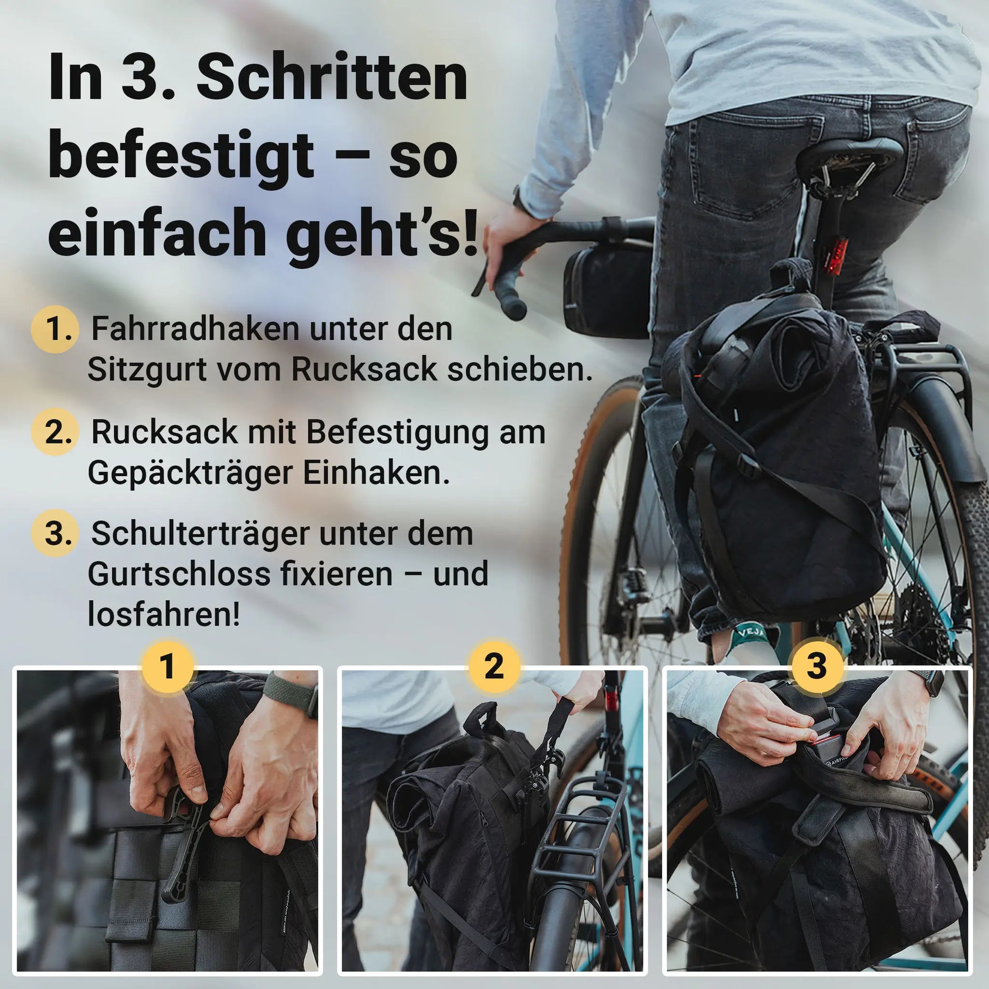 Lieferumfang: Rolltop 35 + Fahrradhaken + Organizer