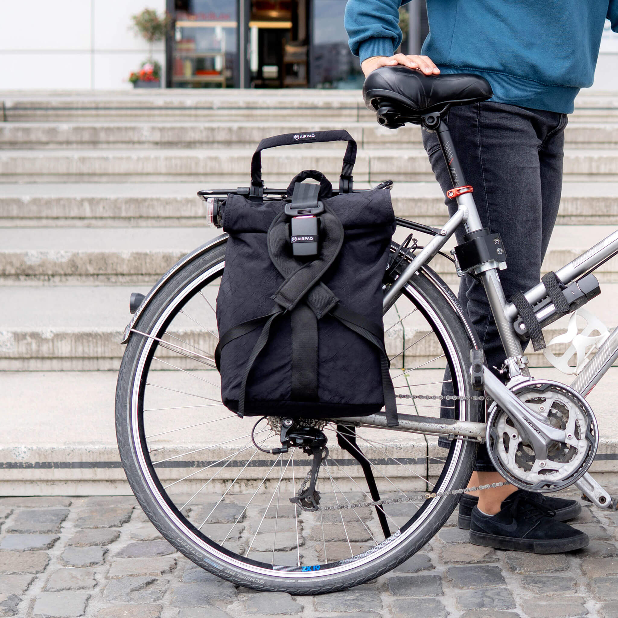 In 3 Schritten wird dein Rolltop zur Fahrradtasche – optional erhältlich: Fahrradhaken