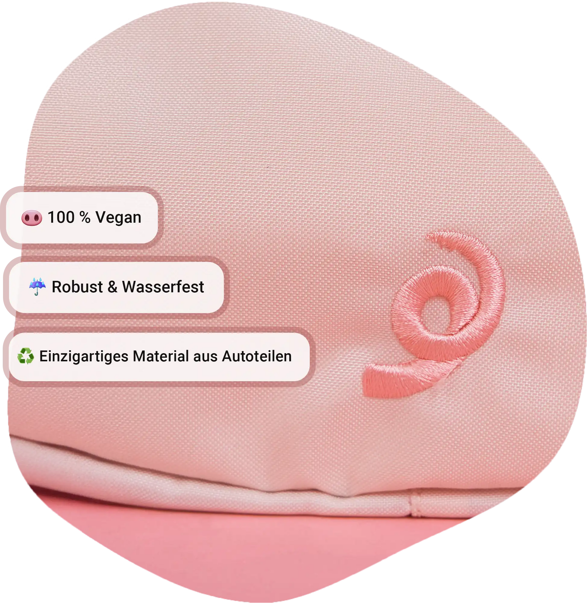 Die Produkte der Schweine-Edition bestehen aus hochwertigen, in Europa upgecycelten Materialien – z. B. Airbagstoff und Sicherheitsgurten, die in der Autoindustrie keine Verwendung mehr finden. Sie werden mit viel Handarbeit unter fairen Bedingungen gefertigt. Zusätzlich fließt ein Teil jedes Verkaufs direkt an Team Tierschutz.