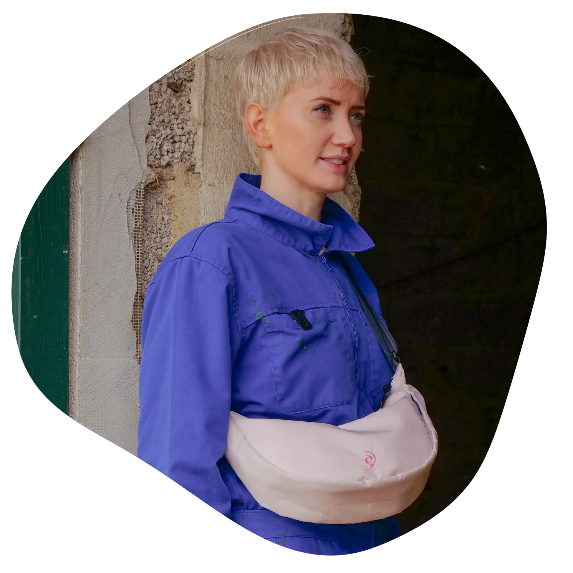 Kleine Halbmondtasche aus Airbags · 3 L Volumen · Ein Symbol für Tiere, die keine Stimme haben