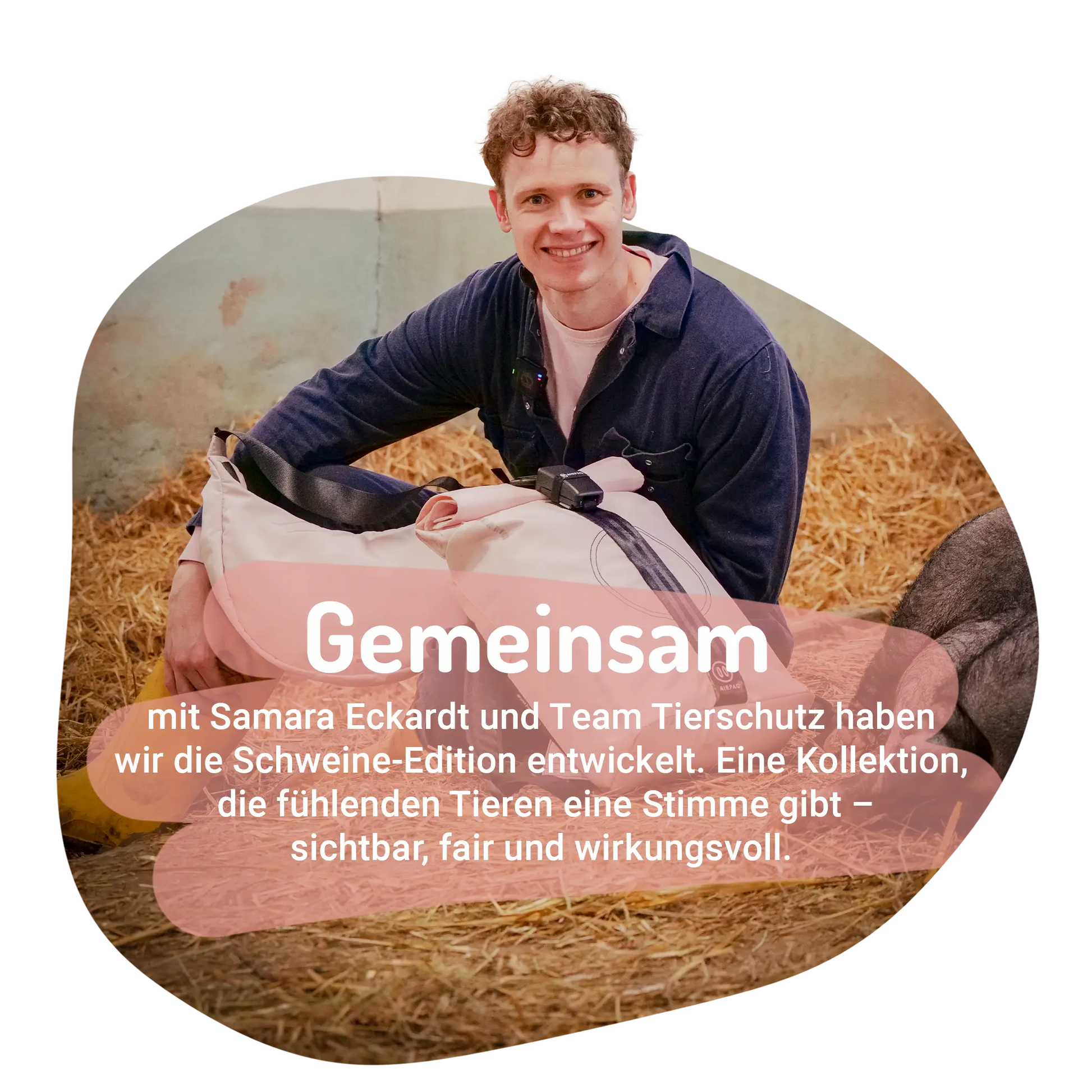 Mit Samara Eckardt und Team Tierschutz haben wir die Schweine-Edition entwickelt. Eine limitierte Kollektion, die durch Design, Material und Spende ein starkes Zeichen setzt: Für mehr Sichtbarkeit, Empathie und Veränderung.
