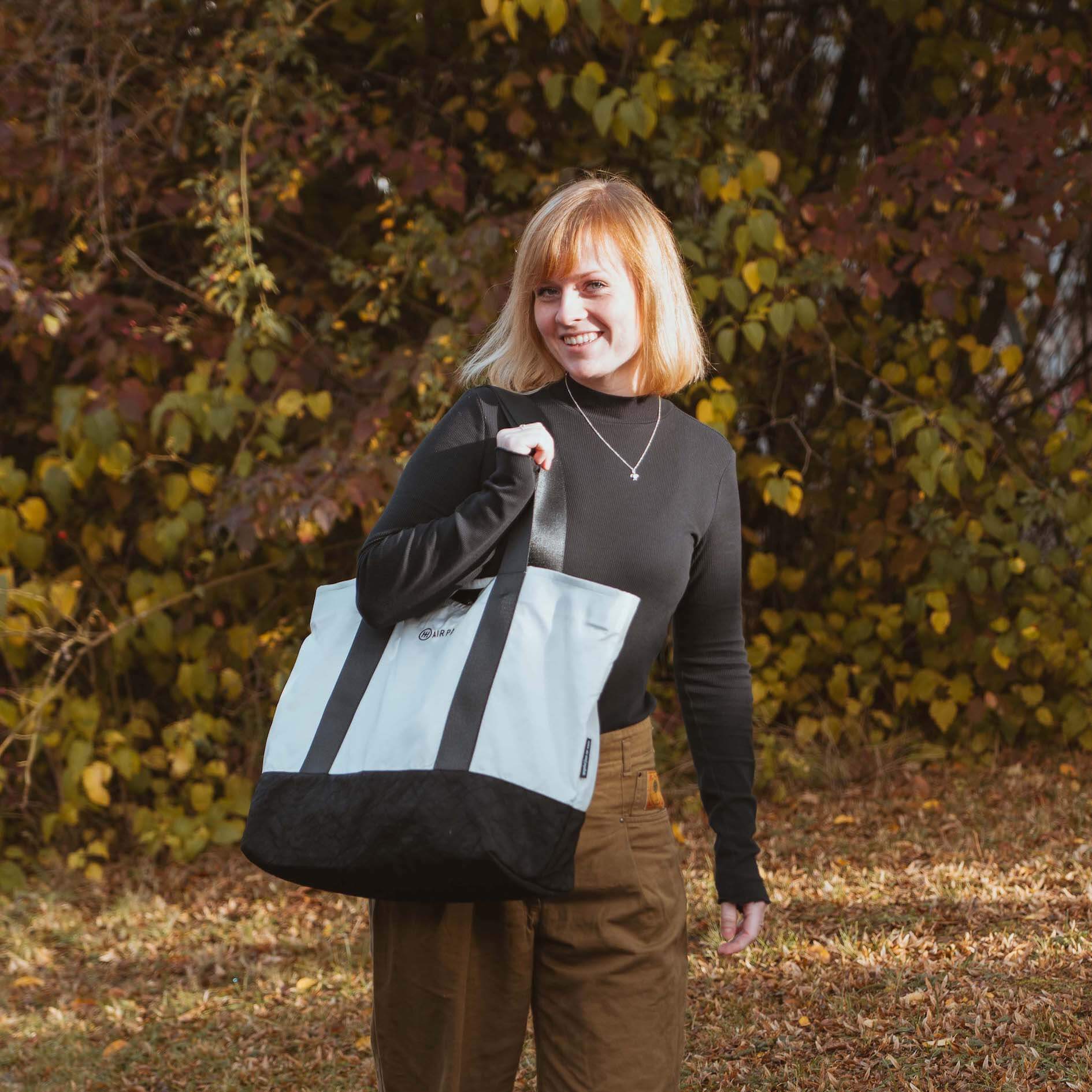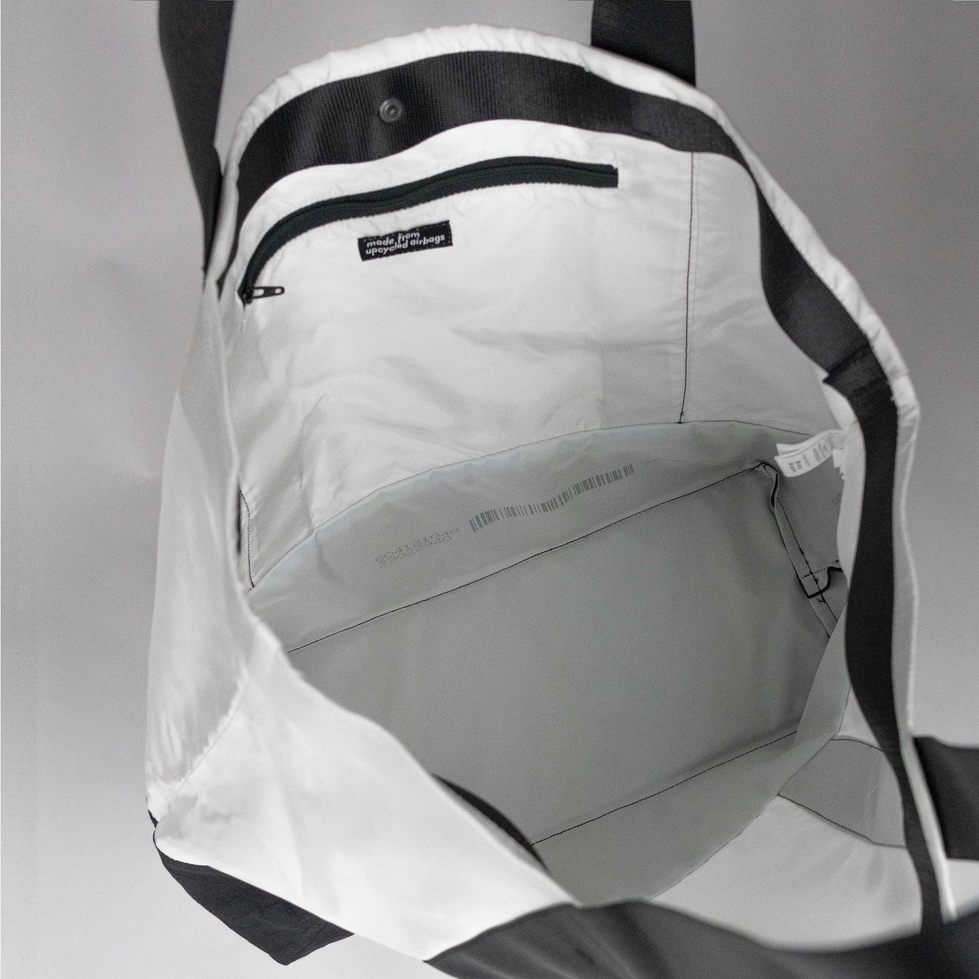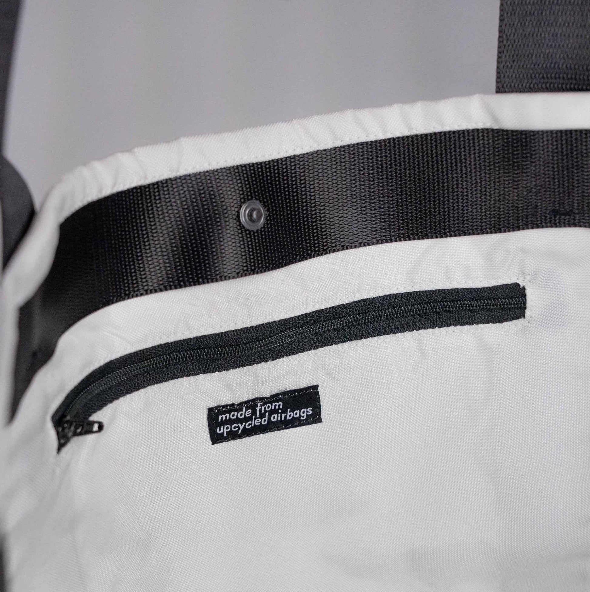 Tragetasche aus Airbags – Ideal als Einkaufs- oder Strandtasche.